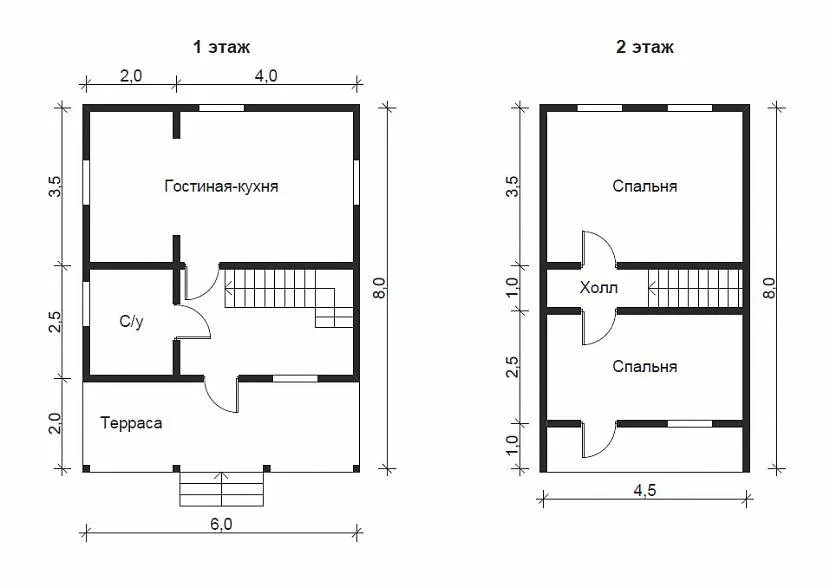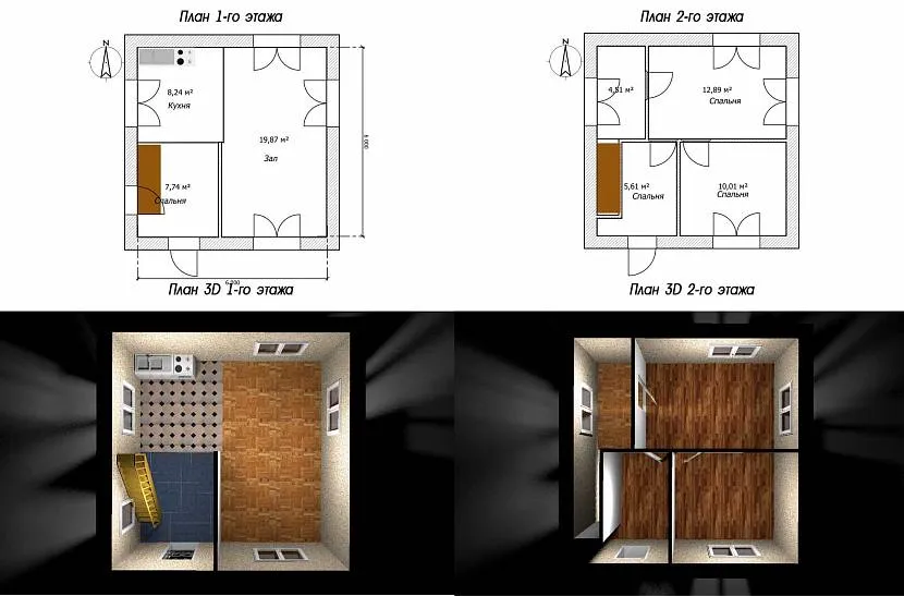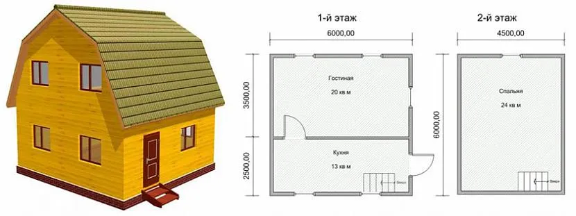 План двухэтажного дома 6 на 6 м: выбор материала для строительства