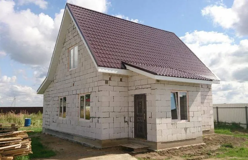 Крыша строения выполняется в форме треугольника или многоугольника, делается симметричной или нет. Чтобы построить достаточно недорогое здание используют пеноблоки.