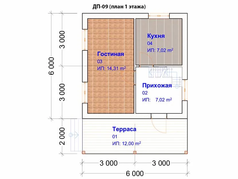 Простая планировка дома площадью 6х6 с одним этажомИсточник Стройлес-урал.рф