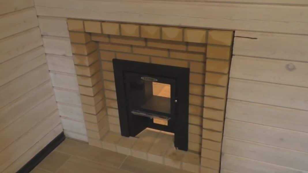В щите снизу остается маленькое отверстие для конвекции воздушных потоков между печной и кирпичной стенками. Кроме того, кладка должна превышать поверхность стены минимум на два десятка сантиметров, иногда ее выводят до самого потолка. Лучше всего, если от экрана до стены будет оставлено расстояние в пять – пятнадцать сантиметров, что позволит сократить удаленность печи от стен до 20 – 40 см.