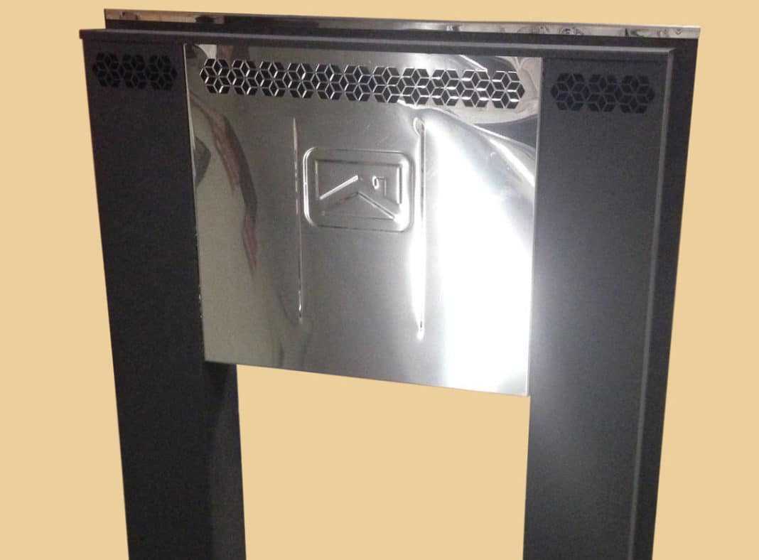 Первые экземпляры монтируются непосредственно в конструкцию во время кладки. Многие ошибочно считают, что такой вариант устанавливается раз и навсегда и заменить его в случае поломки будет невозможно. Это неверно, поскольку в печку встраивают исключительно опорное крепление, которое защищает от жара, а сам термозащитный экран устанавливается отдельно.