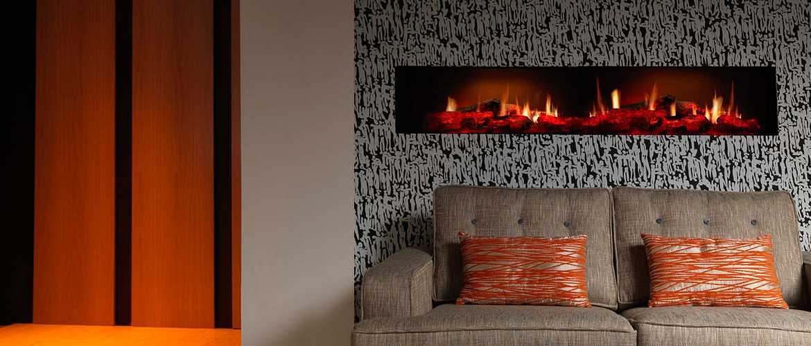 Эти изделия примечательны внушительными размерами. Ширина может достигать 2-2,5 метров. Такие варианты отлично располагаются в просторных залах, создавая эффект настоящего пламени.
