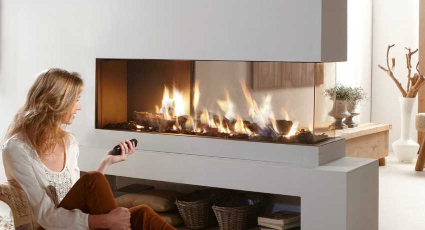 Если камин оборудован термодатчиком, то можно заранее программировать нужную температуру в помещении. Еще проще выполнять настройки поведения прибора при наличии в комплекте пульта дистанционного управления