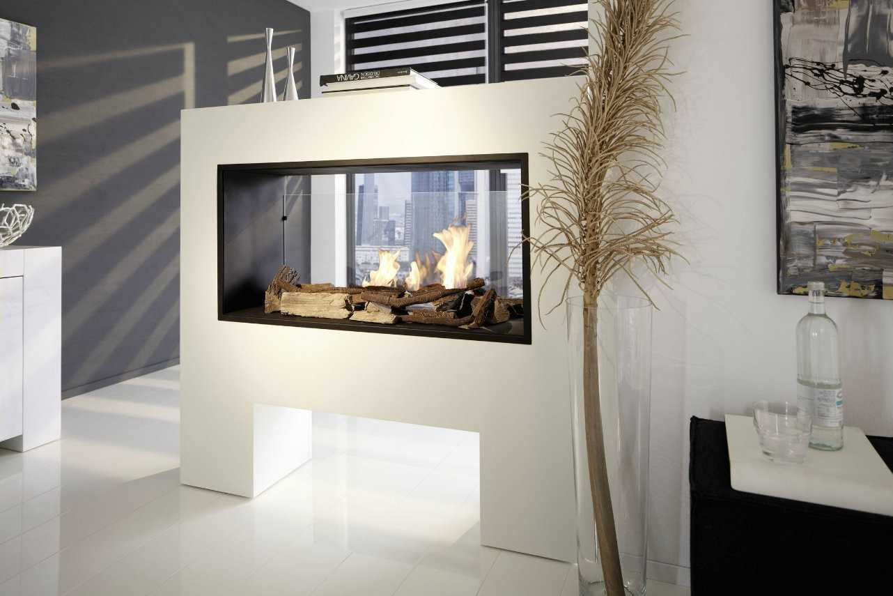 Электрокамины, встроенные в перегородку, как правило, используются для разделения пространства между кухней и гостиной, однако возможны и другие варианты – все зависит от размеров и планировки комнаты.