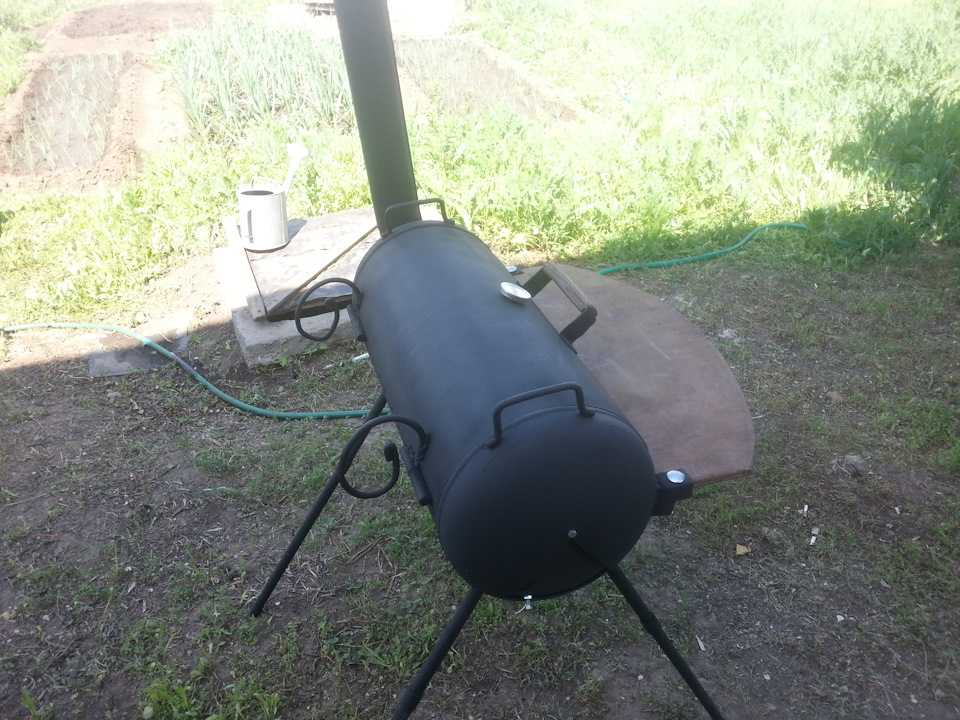 Самодельный агрегат прекрасно подходит для эксплуатации на даче, для загородного участка, а также в качестве передвижной жаровни – если использовать маленькую емкость, то конструкцию можно брать с собой на природу.