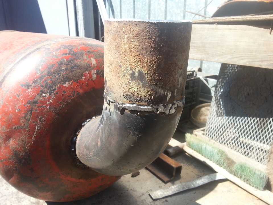 Форсунки лучше сделать съёмными, их легче чистить. Реализуем эту задачу так: в стенку ёмкости ввариваем 3—4-сантиметровый отрезок трубы, он будет выполнять роль коннектора форсунок и смесителя. Диаметр трубы выбирается так, чтобы форсунка с усилием входила на 2—3 сантиметра и фиксировалась. Для большей плотности на край форсунки можно изготовить манжет из жаропрочного силикона.