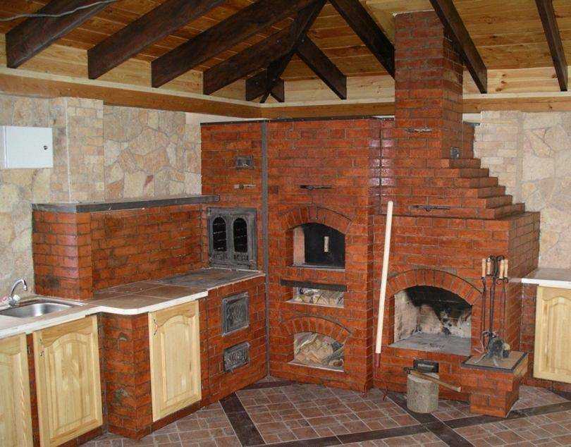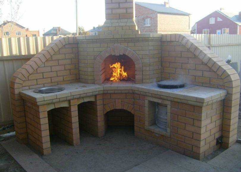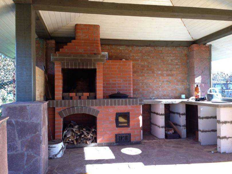 встроенная печь представляет собой специальное оборудование из кирпича, которое включает духовку, коптильню и гриль. Такая конструкция позволяет готовить любые виды блюд. Чтобы ее возвести требуется серьезная кладка;