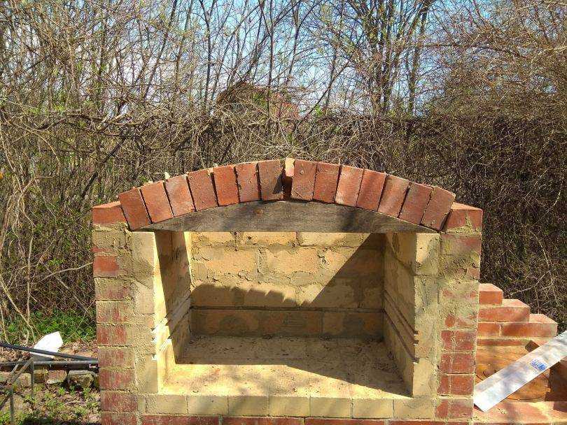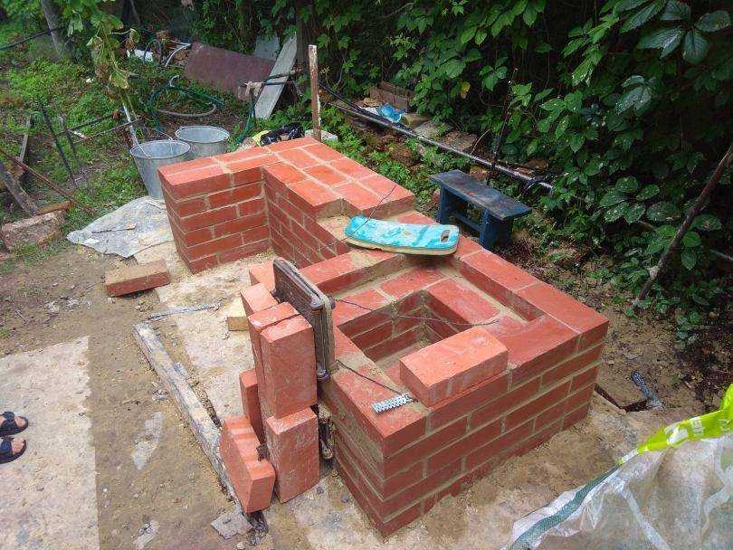 Затем обустраивают дымоход. Не следует делать трубу для отвода дыма очень высокой. Рекомендуется выложить 12-14 рядов кирпича.