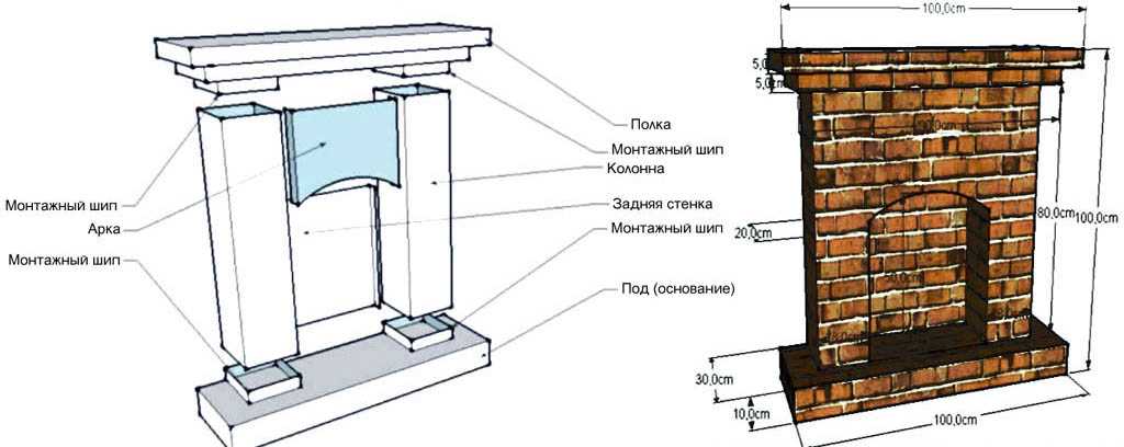 Нижняя часть в виде подставки всегда должна быть длиннее и шире основной конструкции очага, примерно на 100-120 мм. Чтобы изготовить опору, можно использовать 2 самых простых и эффективных способа: