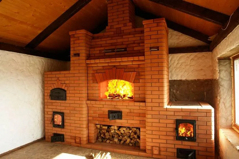 Основные конструктивные элементы каминов на дровах – собственно печь, с прямым дымоходом и топкой.