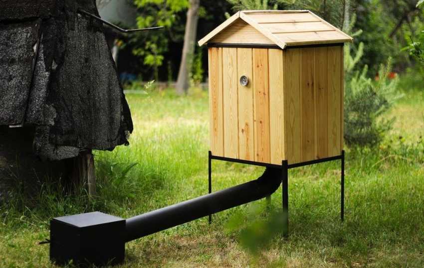Чтобы соорудить деревянную коптильню, прежде всего нужно выкопать траншею на два штыка в глубину. В ней должны разместиться труба, камера для топки и сама коптильня. Дым, попадая в яму, задерживается там и очищается, а затем поднимается в коптильню.