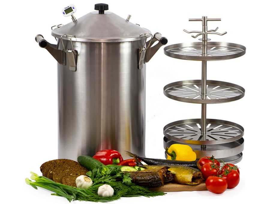 Не могу обойти стороной и то, что у вас есть возможность выбрать один из трёх объёмов: 10, 20 и 30 литров. Если вы будете коптить с размахом, то смело можно брать 30 литров. Если же ваш предел — это закоптить 1 грудинку раз в месяц, то 10 литров вполне достаточно.