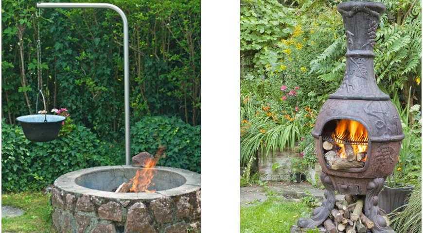 Чаша может быть классической, из камня или чугуна. Это делает предмет устойчивым и продлевает его срок службы. Некоторые очаги – настоящее произведение искусства. Это предметы с разнообразными формами, узорами и дополнительными украшениями. Они послужат отличным украшением садового участка.