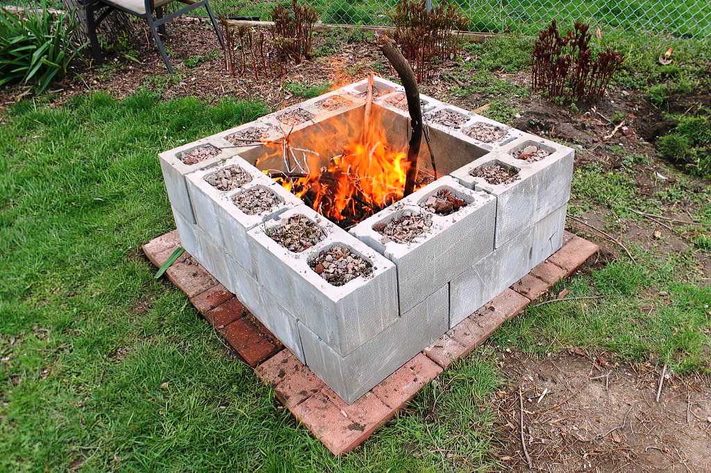 Обустроить место для разведения костра можно всего за несколько часов. Понадобится только несколько плоских гранитных камней или галька, щебень. Ими выкладывают дно кострища. Также на дно можно уложить кирпич, а промежутки заполнить щебнем. Для возведения стенок очага для костра понадобится десятка два-три кирпича. На этом все.