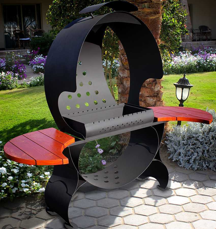 Более важной особенностью конструирования представляется барбекю. Этот мангал распространен в Америке и Австралии, он выглядит как металлическая чаша на подставках и с решеткой наверху. Она предназначена для стейков и плоско нарезанных овощей