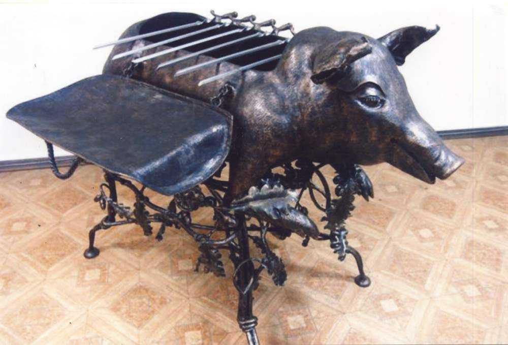 К примеру, гриль можно сделать в форме растения, животного, кареты и даже Земного шара. Главное – найти квалифицированного специалиста, который знает, как безжизненному куску металла придать облик живого существа. При этом туловищем оленя, пони или поросенка может стать объемный ящик без крышки, где удобно разводить огонь и переворачивать шампуры