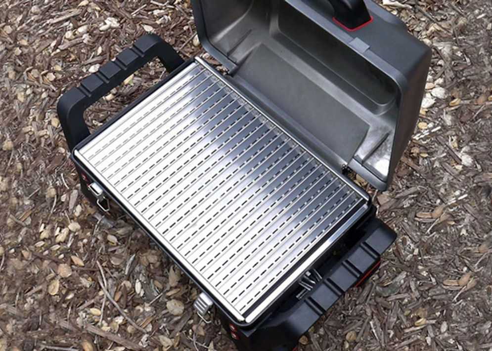 Гриль состоит из кулинарной поверхности, которая представляет собой металлическую решетку, изготовленную из нержавеющей стали, и топлива, способного вырабатывать интенсивное тепло до температуры 300 °C и более.