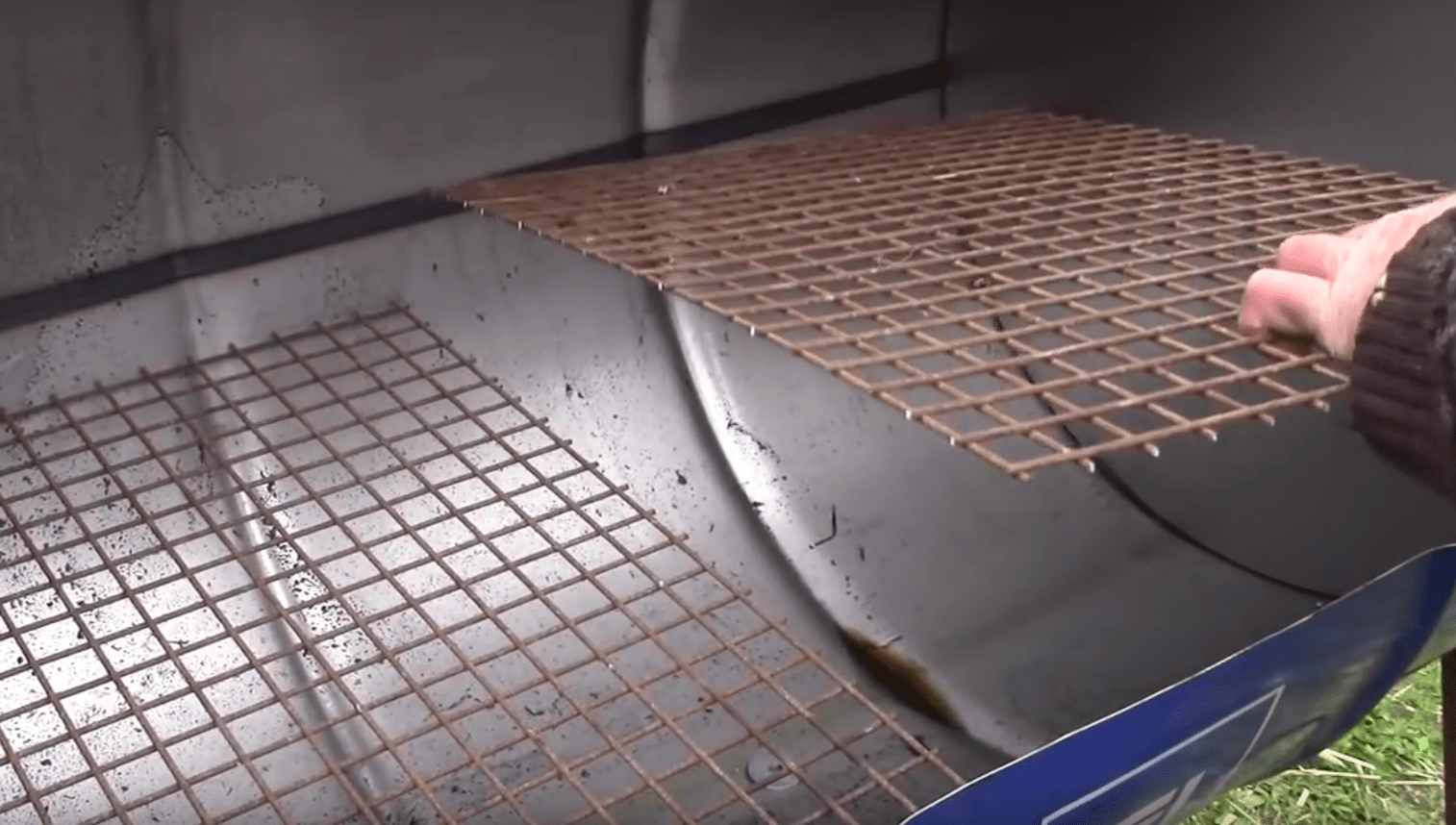 Далее нужна сетка для гриля. Чтобы установить сетку на правильную высоту в бочку её ширина должна быть 25 сантиметров. Воспользуемся кусачками и откусим интересующий нас кусок.