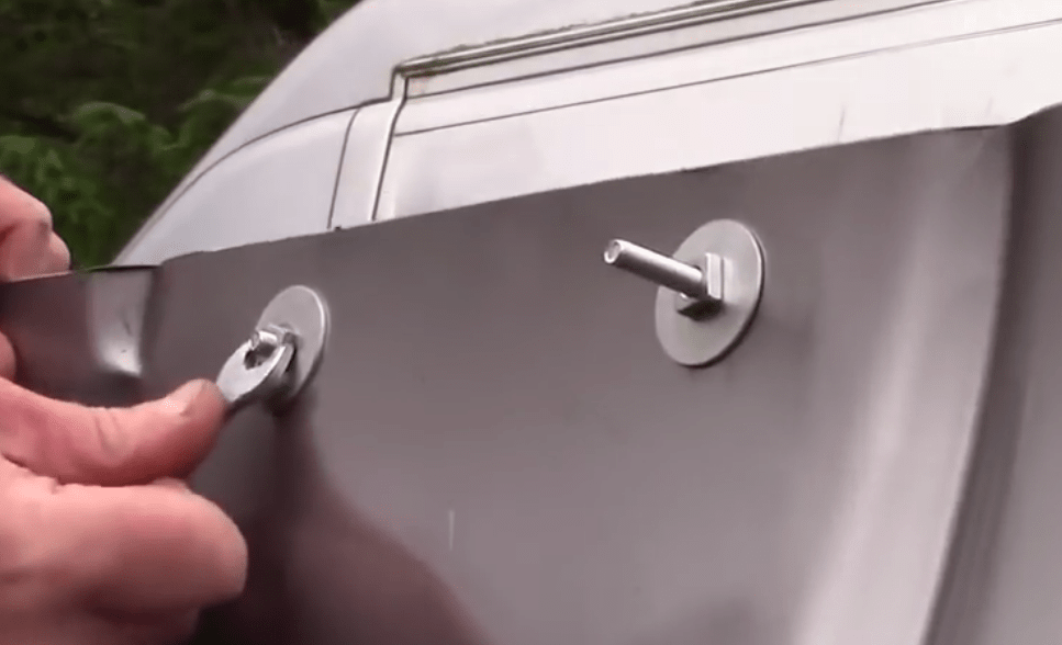 6 мм сверлом делаем по 4 отверстия с каждой из сторон. Учтите, что у вас должны быть болты с таким же диаметром. Позже мы прикрепим сюда петли для крышки. Размеры между отверстиями зависят от того, какие петли вы используете. Расстояние замерьте непосредственно на месте.