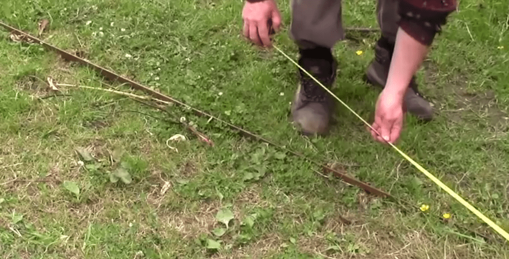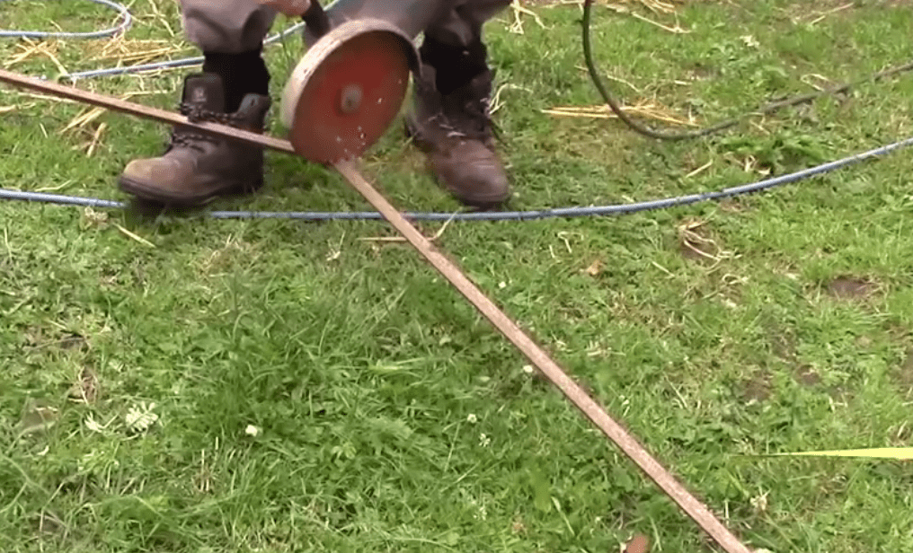 Теперь пришла пора сделать ножки для мангала из металла своими руками. Берем старый железный уголок и намечаем два отрезка по 170 см – это будут наши ножки, прикрепить которые мы сможем к бочке без использования сварочного аппарата.