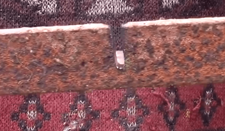 Стальная лента 25 мм. нам потребуется для изготовления направляющих для передвижной опоры из шампуров. Отмеряем ленту по внутренний ширине будущего мангал, и отрезаем. Направляющих нужно 2 и находиться они должны по краям мангала с внутренней стороны. Вставляем на место, и привариваем.