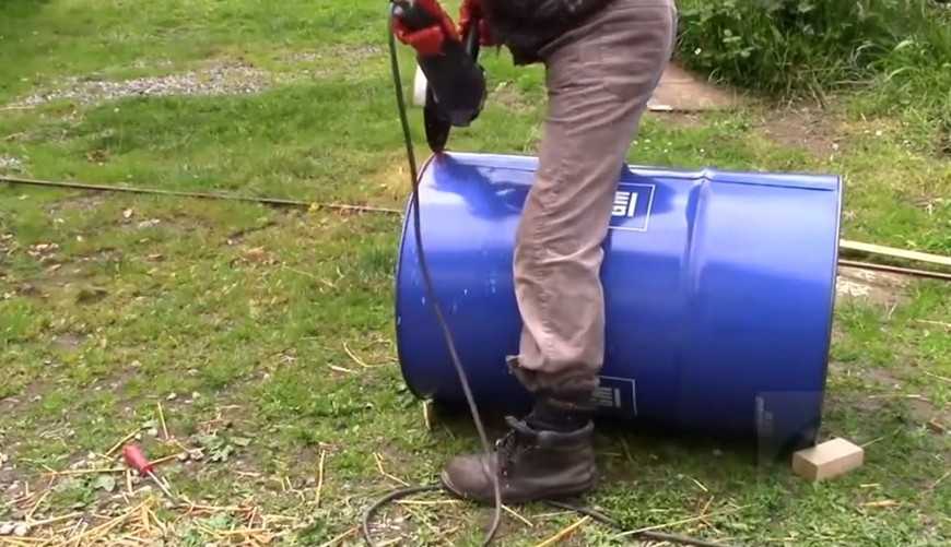 Прежде чем приступить к изготовлению барбекю из бочки 200 литров своими руками, емкость освобождают от содержимого и тщательно моют. Для этого наливают мыло и воду и ополаскивают по стенкам. Сливают воду и оставляют сохнуть на день. Затем начинают работы, следуя пошаговым рекомендациям: