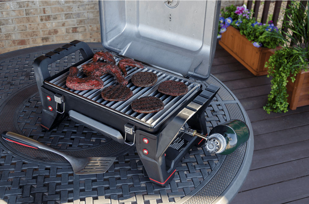 Интересный и современный пожаробезопасный вариант – газовый гриль. Для барбекю можно приобрести небольшие настольные модели. Они не занимают много места, готовят быстро и экономно. Кроме того, их всегда удобно брать с собой в дорогу и использовать на природе. В качестве источника питания применяются небольшие баллоны с пропаном, которые довольно просто заправить.