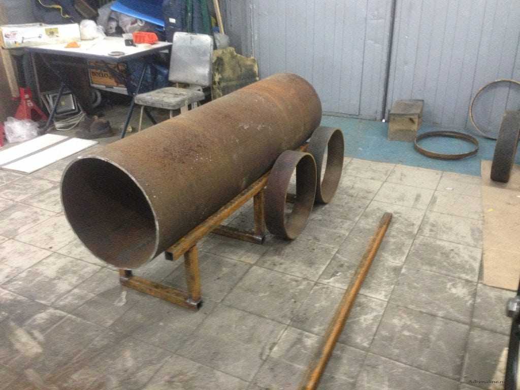 Изготовить приспособление своими руками, применяя подручные средства, несложно. Зачастую умельцы используют трубу или баллон от газа.