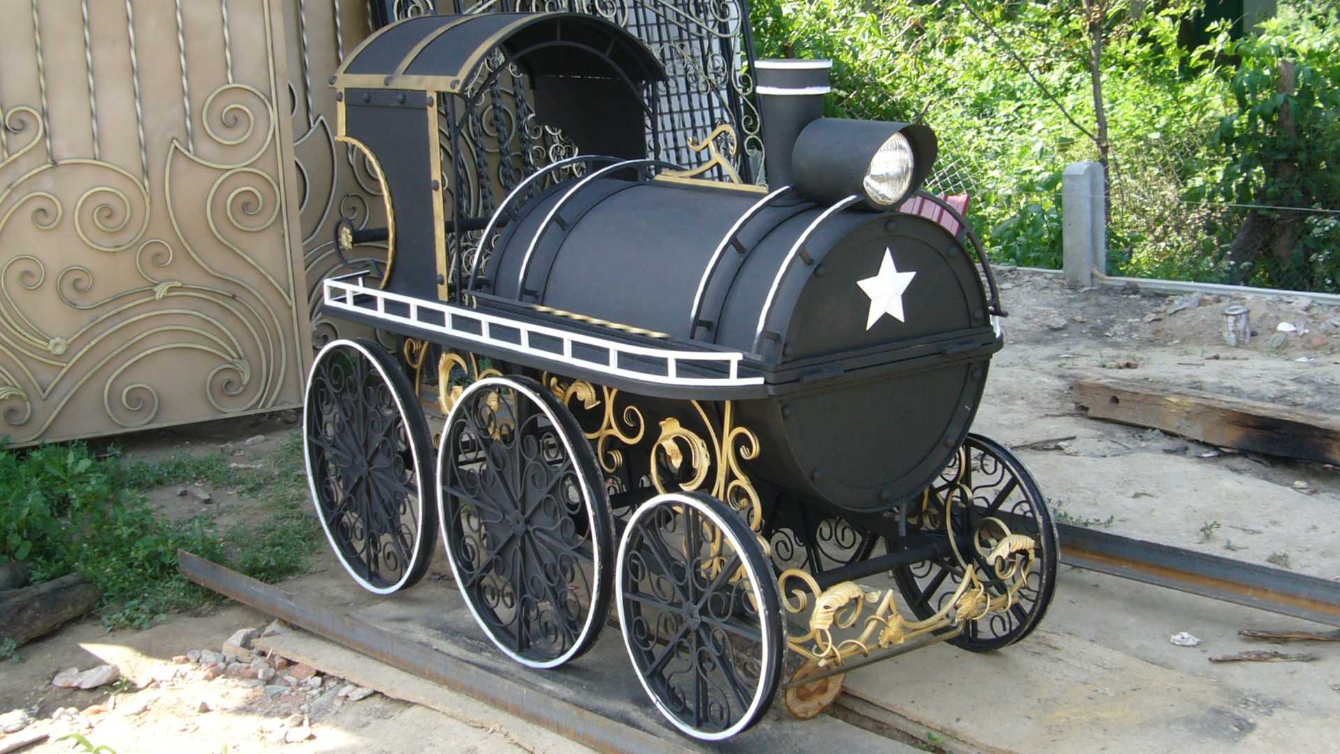 Такую жаровню в виде паровоза можно приобрести в специализированном магазине или заказать у мастеров