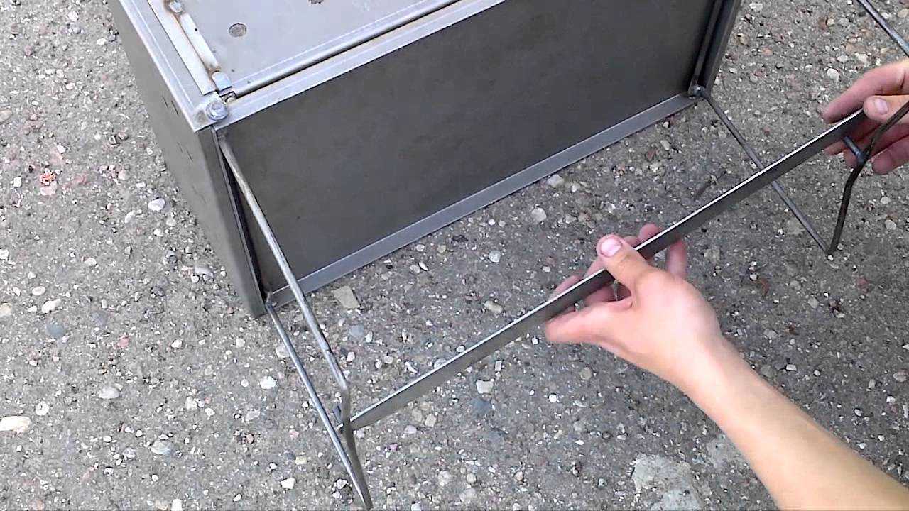 - На противоположной стороне жаровни монтируется опора самокрутов из уголка с отверстиями подходящего размера.