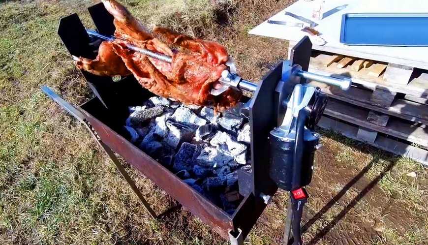 Не у каждого хватит терпения выстоять много времени у барбекю или мангала и постоянно переворачивать шампура. Отличным вариантом станет электропривод, заставляющий их вращаться самим.