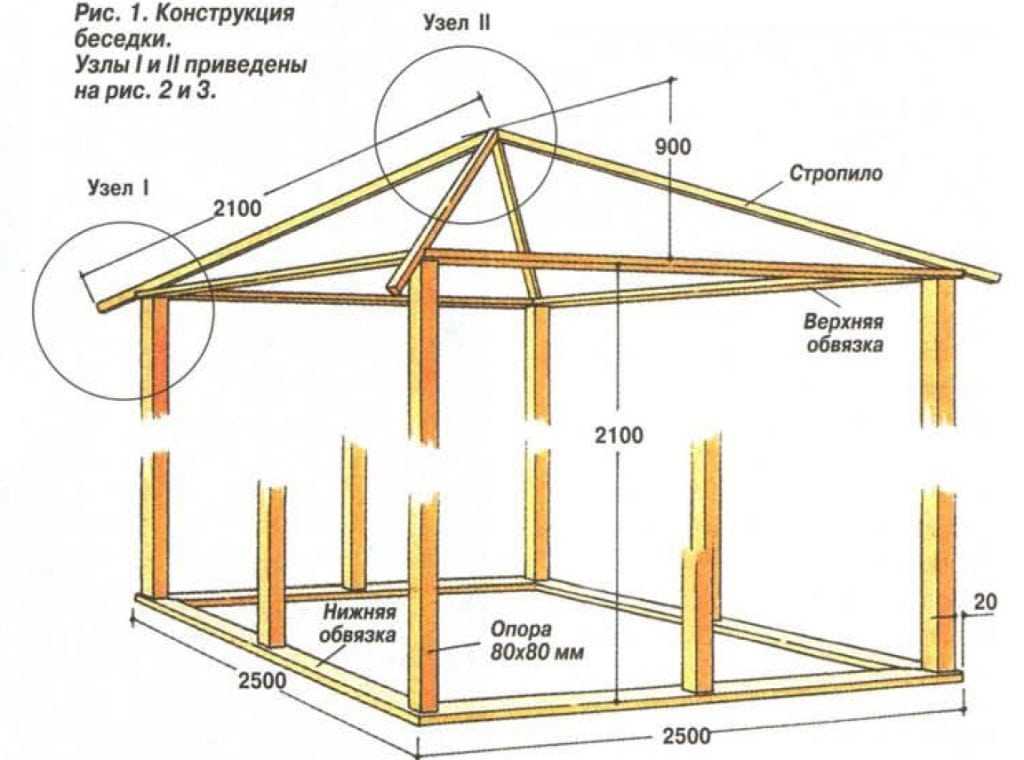 Каким бы важным ни было исполнение стен, кровли и фундамента, стоит думать еще о порядовке (схеме возведения) барбекю. По техническим причинам очень тяжело поставить в беседке высокий дымоход или сделать изощренный комплекс каналов для отвода дыма. От дефлекторов тоже стоит отказаться, потому что это отрицательно сказывается на эстетике сооружения. При выборе среди готовых чертежей имеет смысл отдавать предпочтение тем, где используется меньше всего закладных из стали и мест, обвязываемых проволокой. Чем ниже вероятность воздействия ветра на печь, тем ниже можно делать шатер, зато требуется увеличивать трубу; в более открытых беседках ситуация, конечно, обратная будет.