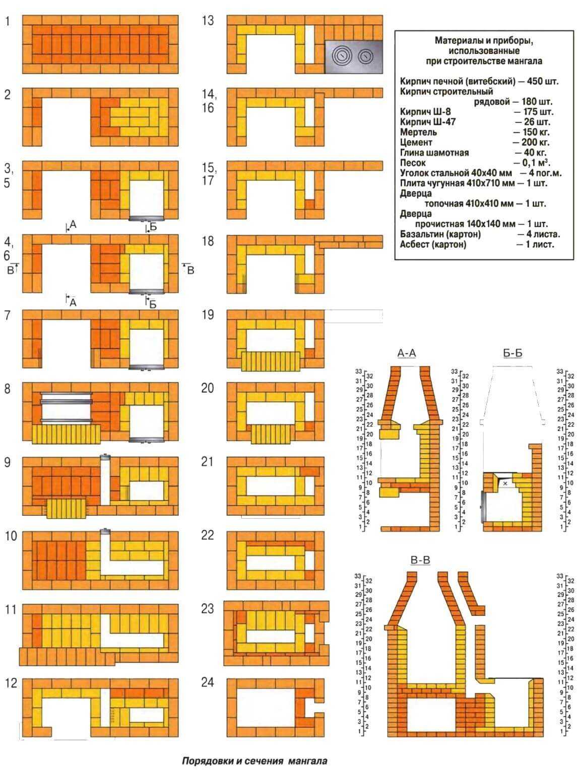 44 Чертежа мангалов из кирпича с размерами и схемами