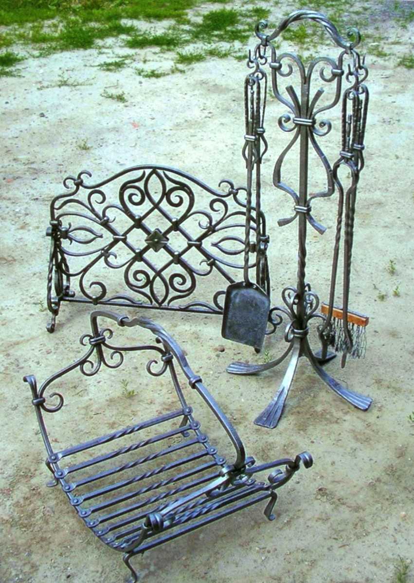 - Кованый литой. Это массивная конструкция, требующая большой площадки рядом с камином.