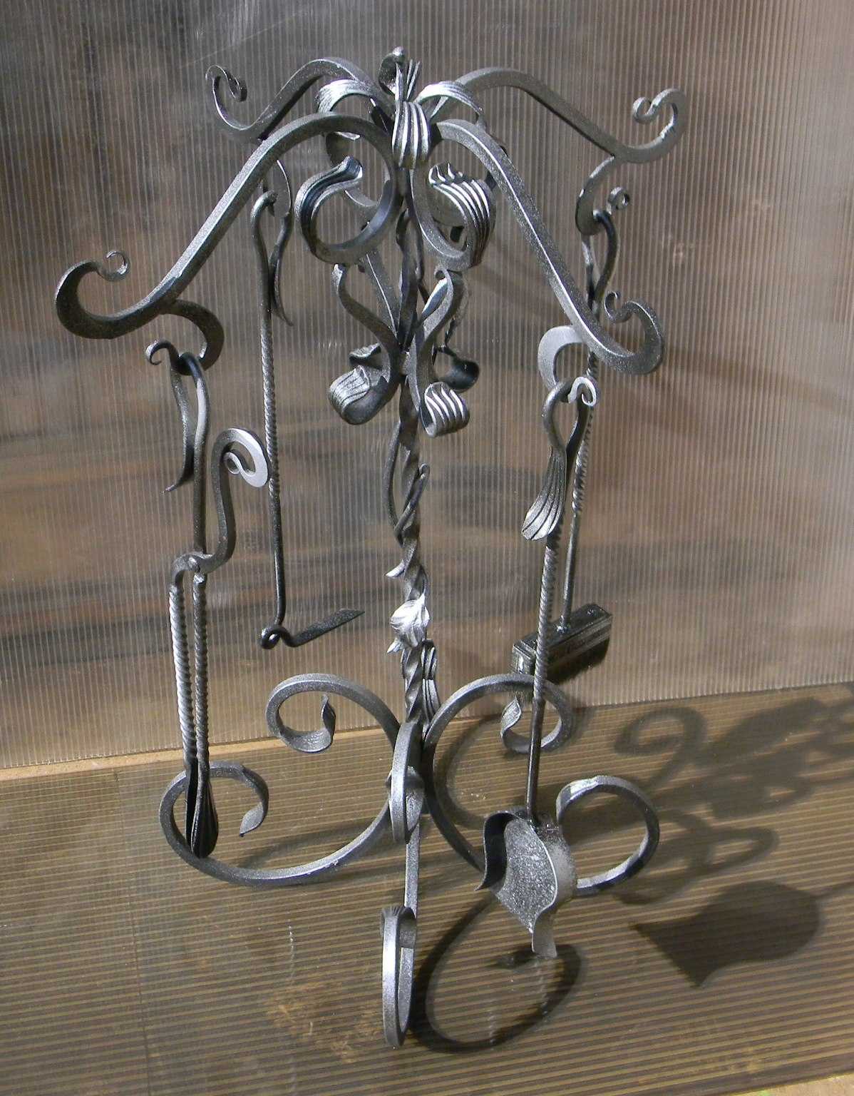 Самым практичным и удобным является набор, представляющий собой подставку со стойкой, на которой размещены все инструменты – сервитер. Предпочтение лучше отдавать кованым наборам. Они не только выглядят изящно и благородно, но и придают большую устойчивость конструкции. Существует два типа комплектов: