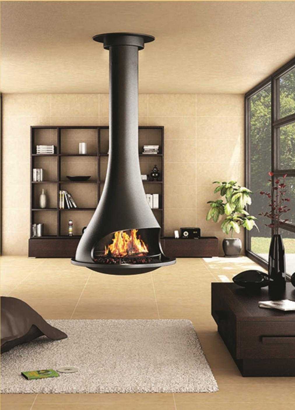 Так вот, подвесные камины устроены следующим образом: это дымоход, который монтируется в потолочной плите перекрытия, а на конце трубы (снизу) располагается сама топка, которая выполнена не просто в классическом стиле, а имеет разнообразные формы.