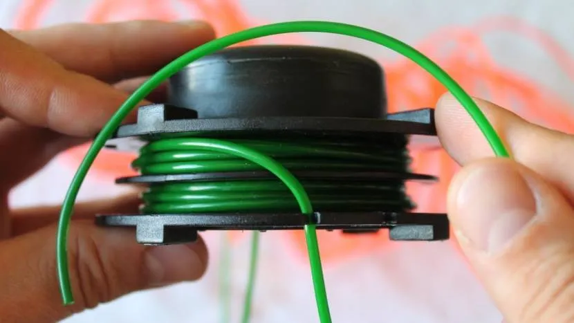 После этого механизм внутри катушки выпустит часть лески наружу, а установленный на кожухе нож обрежет ее до необходимой длины.