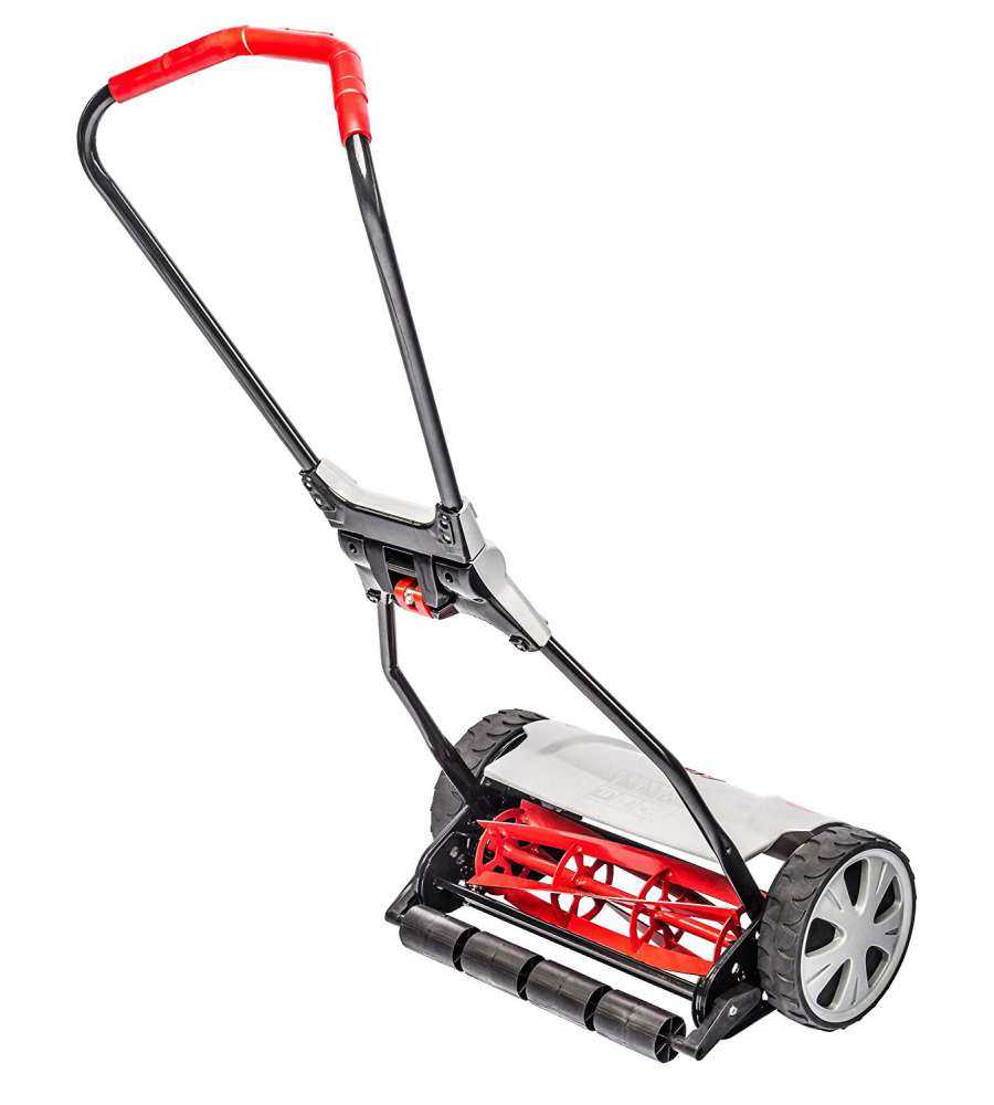 Одна из лучших барабанных газонокосилок по мнению реальных покупателей в интернете. Этот агрегат оснащен мягким 16-литровым травосборником – не самая удачная характеристика по вместительности, но лучше, чем ничего. Регулировка высоты скашивания по 4 положениям помогает подстричь газон в соответствии с вашими требованиями к высоте травы. А ножи, которыми обладают эти барабанные газонокосилки, сделаны из прочной углеродистой стали марки GB 65Mn.