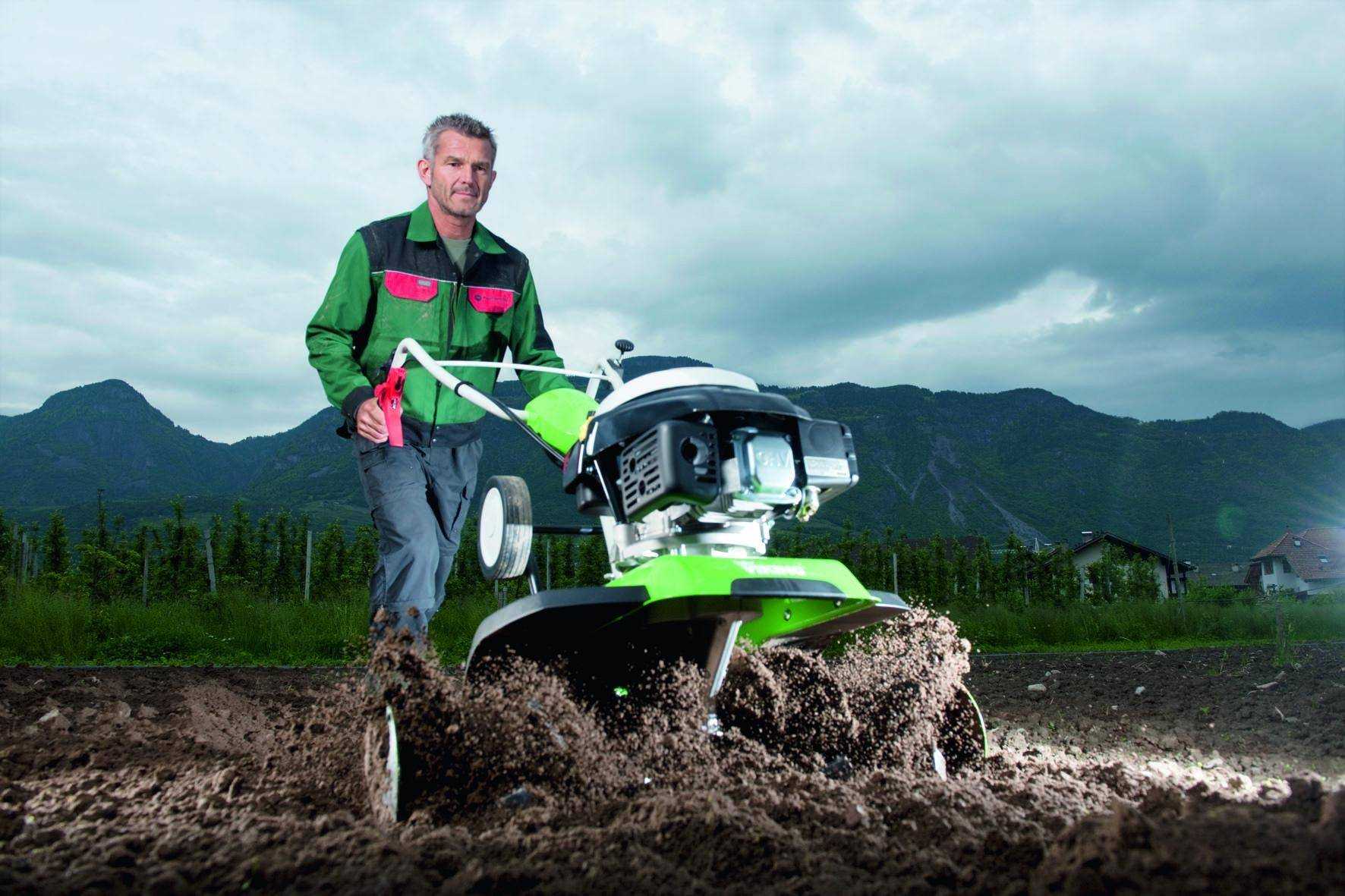 Портативная модель может использоваться для обработки огорода с маленьким расстоянием между грядками, в теплицах, между кустов и деревьев. Небольшой вес агрегата позволяет без труда управляться с ним престарелым людям, женщинам и подросткам. Двигатель работает практически бесшумно, что очень ценится окружающими людьми и самими работниками.