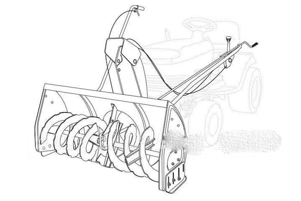- 1. После первых 30 минут работы нового снегоуборщика необходимо остановить двигатель мотоблока и проверить затяжку всего крепежа снегоуборщика. Если возникла необходимость — подтянуть крепежи.