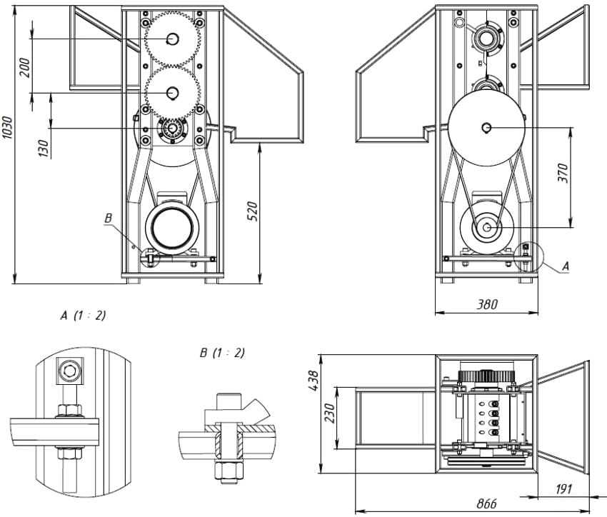 Зернодробилка своими руками из стиральной машины и ее чертежи довольно условны, на примере конкретной модели. Однако, взглянув на них, можно понять примерный ход дальнейших работ и устройство основных узлов: