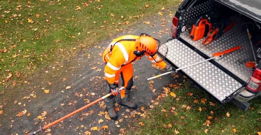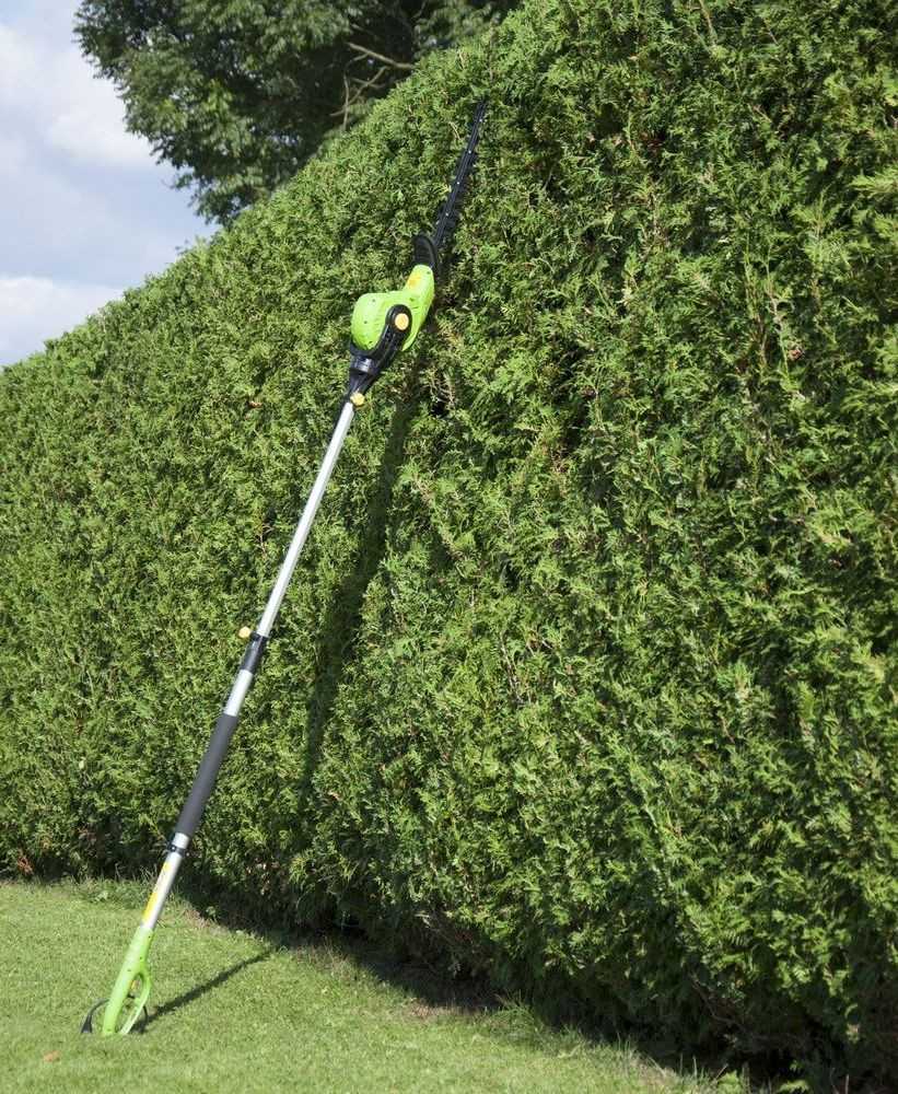 Высоторез позволяет с земли доставать до верхушек деревьев и высоких кустов, подрезая сухие ветки, которые нарушают композицию и нарушают привлекательность сада.