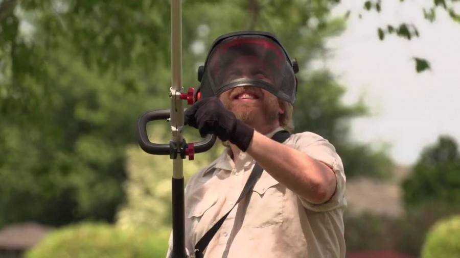 В плане конструкции высоторез ничем особым не выделяется. Устройство точно нельзя назвать сложным инструментом. Это длинная рукоятка, которая чаще всего имеет телескопическую систему выдвижения, чтобы контролировать и выбирать высоту. В нижней части располагается кнопка, либо же рычаги, которые нажимаются и приводят в действие размещённый сверху режущий инструмент.