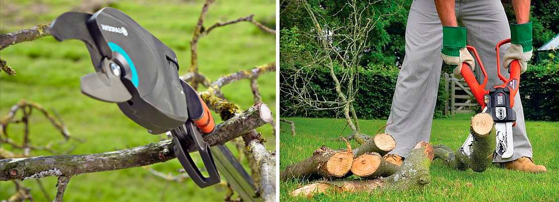Эти приспособления в садоводстве применяются редко. Во-первых, они дорогие, тяжелые и сложные в эксплуатации. Во-вторых, сделать ими правильный срез точно в том месте, где нужно, очень трудно. Срез всегда будет получаться «лохматым», не ровным и будет плохо заживать.