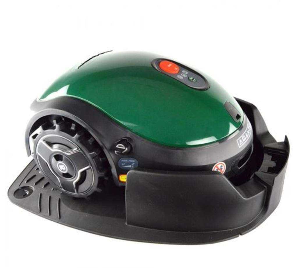 Компактная газонокосилка-робот, по достаточно высокой цене. Однако ее стоимость весьма оправдана высокой мощностью и эффективностью в работе. В автономном режиме техника выдерживает около часа. За это время она обрабатывает до 4 соток газона, аккуратно и качественно. Главная особенность агрегата заключается в том, что им не нужно управлять. Косилка-робот синхронизируется со смартфоном, после чего программирование, подключение, включение, управление происходит через Bluetooth. Инструмент оснащен двумя большими колесами, обеспечивающими хорошую проходимость по траве. Однако даже на не самых больших кочках или неровностях он застревает. Поэтому такая модель подойдет для участков с идеально ровной поверхностью. Включить или остановить газонокосилку можно вручную. Для этого на ее корпусе предусмотрены две кнопки: «Старт» и «Стоп».
