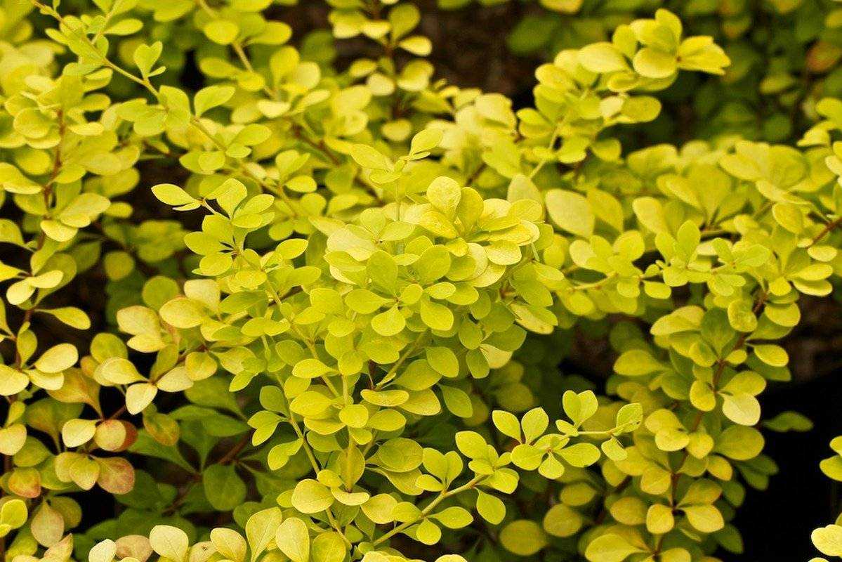 Низкорослые барбарисы с золотистой листвой особенно хороши при посадке на переднем плане цветников.