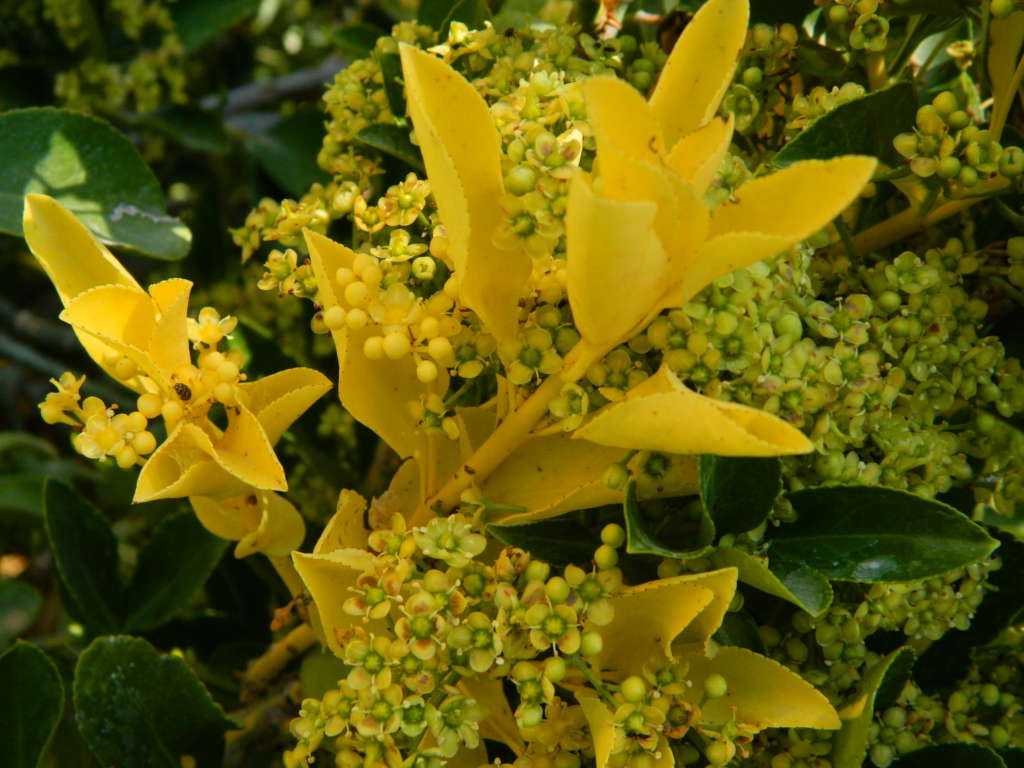 Наиболее распространенное разнообразие, которое выглядит полностью соответствует его названию. Он характеризуется богатым золотисто-желтым цветом с зелеными листьями средства на овальном. Кустарник достигает высоты 40-50 см и легко взбираться до двух метров решетки решетки, что делает его идеальным оформлением ограждений или оплетки неприглядных зданий.