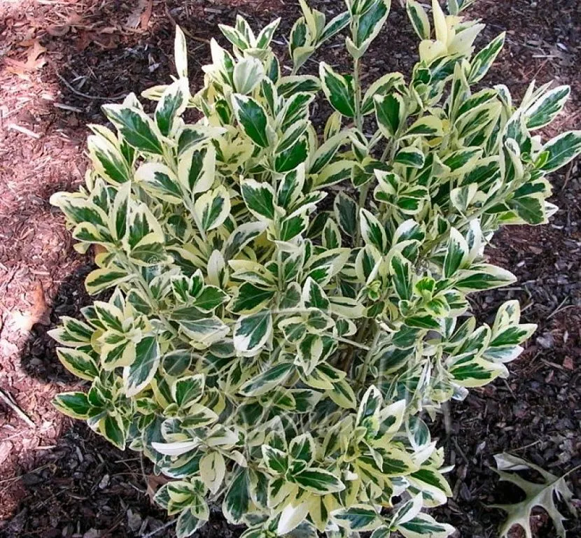 Декоративный вечнозеленый кустарник с оригинальной окраской листьев и средней скоростью роста. Он выглядит эффектно и необычно благодаря бело-зеленому цвету, который осенью становится розовым. Сорт хорошо растет как в тени, так и на открытом солнце, нетребователен к почве, любит умеренный полив. Морозостойкость высокая, но может пострадать от поздних заморозков и сильного зимнего солнца.