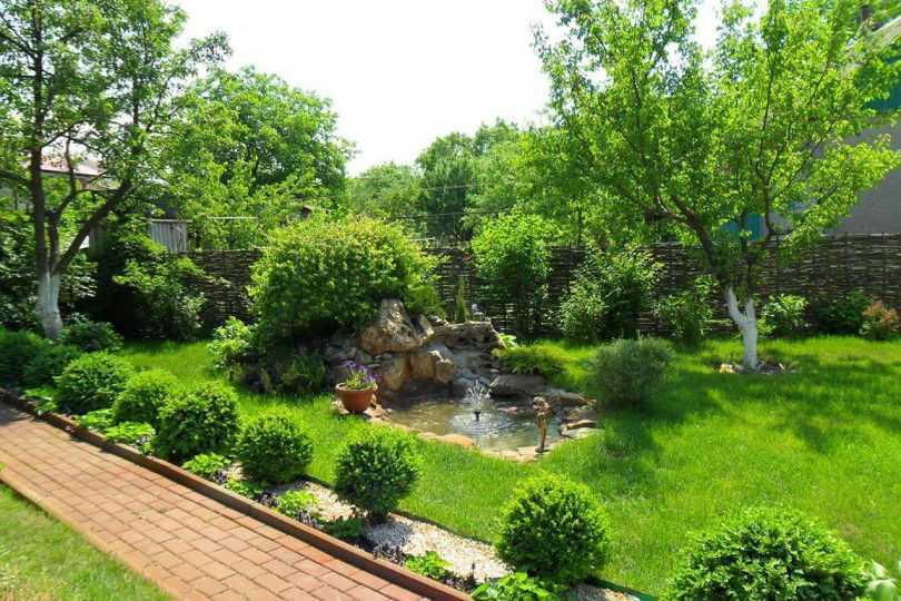 Очень удачным и популярным вариантом для облагораживания территории около дома будет посадка плодовых деревьев. Хорошей альтернативой могут быть яблони, грушевые деревца, сливовое дерево, орех и другие. Также можно использовать их лиственных сородичей – липа, береза, клен, дуб и некоторые другие. Достаточно часто при проектировании ландшафтного дизайна прибегают к вариации хвойных деревьев. Такие неприхотливые карликовые елочки и сосны, кипарисы, туи и можжевельники пользуются большой популярностью, так как не требуют специального ухода и выглядят достойно на протяжении всего года. Отлично смотрятся в сочетании с иными растениями, а также прекрасно выглядят как единичные украшения.
