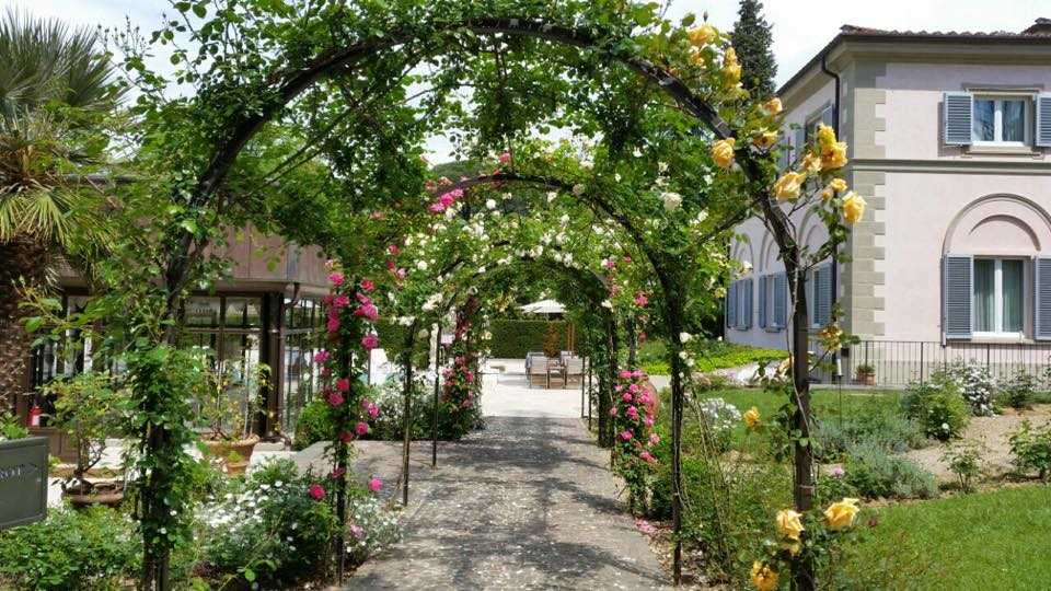 - установите череду арочных опор с благоухающими цветами вдоль стен загородного дома;